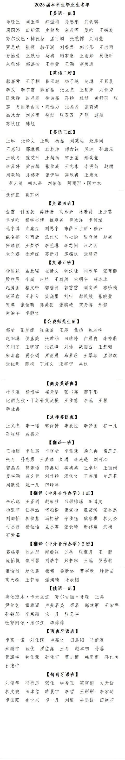 2025届本科生毕业生名单